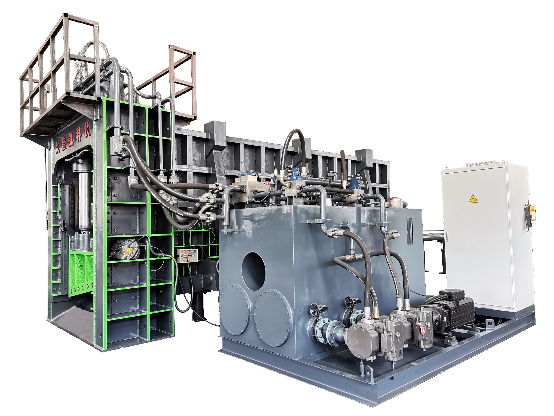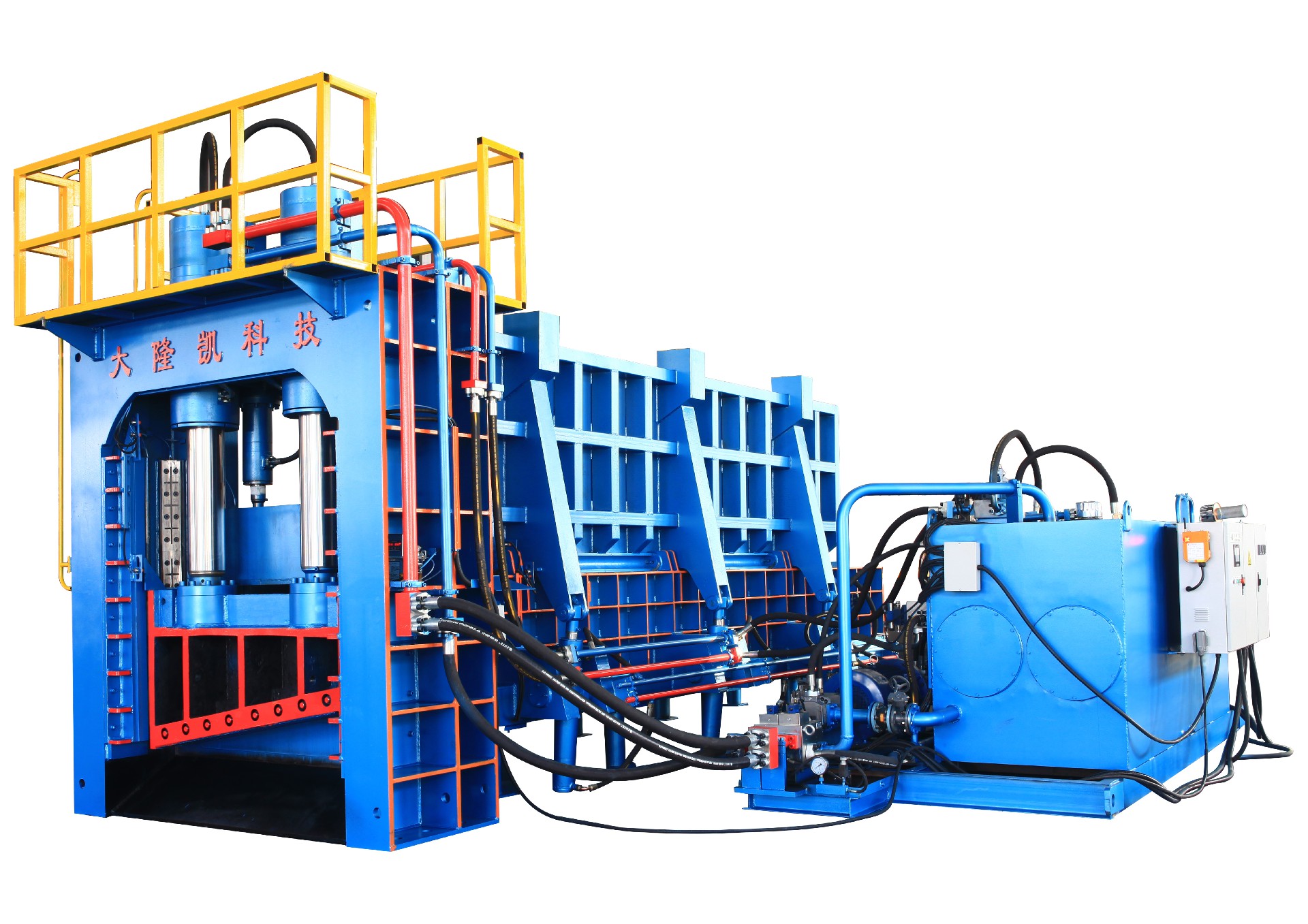 該系列機型可以剪切各種廢金屬廢鋼,經過合蓋、側壓頭的2和3向擠壓后,被壓縮成塊,最終被剪切或者直接壓碎,成為合格的廢鋼。